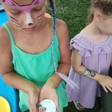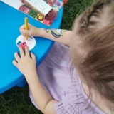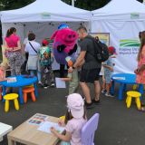 Przygotowaliśmy też zajęcia edukacyjne dla dzieci. Były krzyżówki, quizy, żywieniowe zgadywanki oraz kolorowanki dla najmłodszych. Dzieci wraz z opiekunami chętnie podejmowały wyzwania i próbowały sił w skokach na skakance, a sekundował im dzielnie Chrumas. Największa radość: dyplom od Chrumasa!